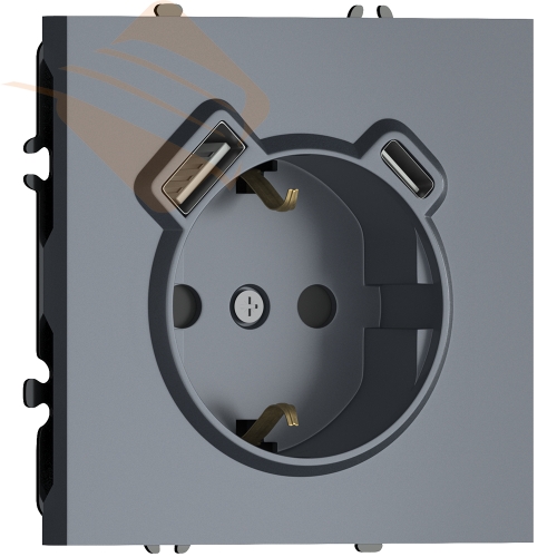| Лицевая панель для розетки 2К+З, USB A+C, со шторками, цвет сталь, серия DB (S08), пр-во Donel |