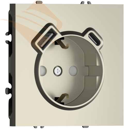 | Лицевая панель для розетки 2К+З, USB A+C, со шторками, цвет шампань, серия DB (S08), пр-во Donel |