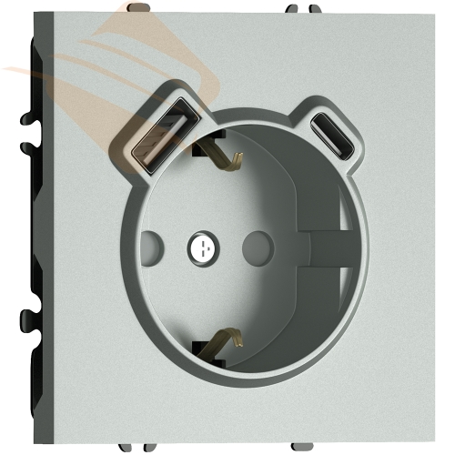 | Механизм электрической розетки 2К+З, винтовые зажимы, с зарядным устройством USB A+C, 5V/3A, мощность 20W, серия DB (A07/S08), пр-во Donel | |||||